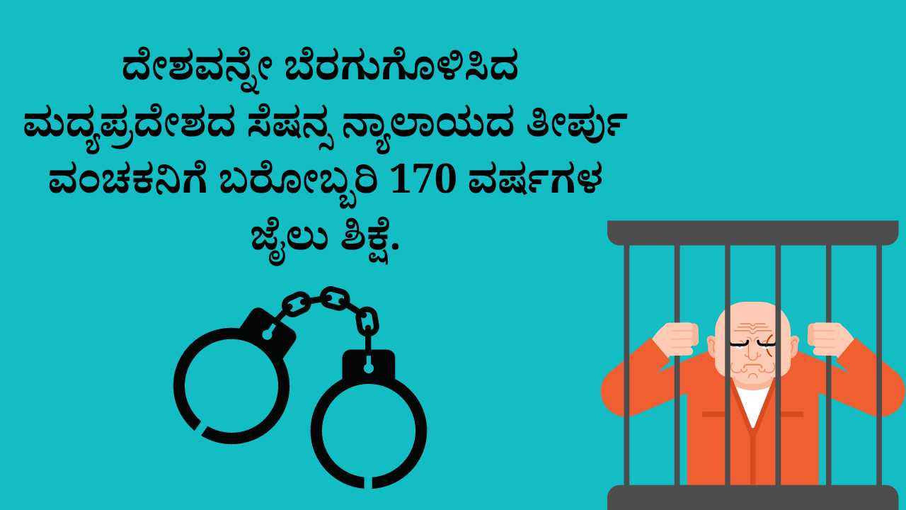 ದೇಶವನ್ನೇ ಬೆರಗುಗೊಳಿಸಿದ ಮದ್ಯಪ್ರದೇಶದ ಸೆಷನ್ಸ ನ್ಯಾಲಾಯದ ತೀರ್ಪು – ವಂಚಕನಿಗೆ ಬರೋಬ್ಬರಿ 170 ವರ್ಷಗಳ ಜೈಲು ಶಿಕ್ಷೆ.